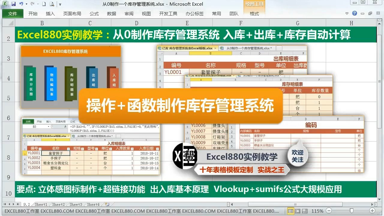 从0制作Excel库存管理系统,入库+出库+库存自动计算,纯函数版,简单方便,易学易用!本系统从空白表开始带大家从系统封面按钮设计,到出入库表及基础资料表排版设计,出入库的一般实现,函数实现原理,操作细节全程第一视角360度无死角呈现,稍微有点基础或者零基础只要认真看视频,跟着案例文件一起做,一定学得会,学会这个相当于学会了以下Excel技术: