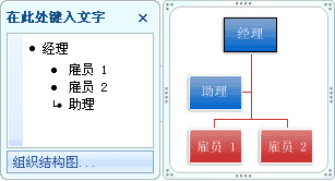 向组织结构图布局(如“组织结构图”)中添加助理框之后,“文本”窗格中会出现一个项目符号(附带一条直线)指示该助理框。